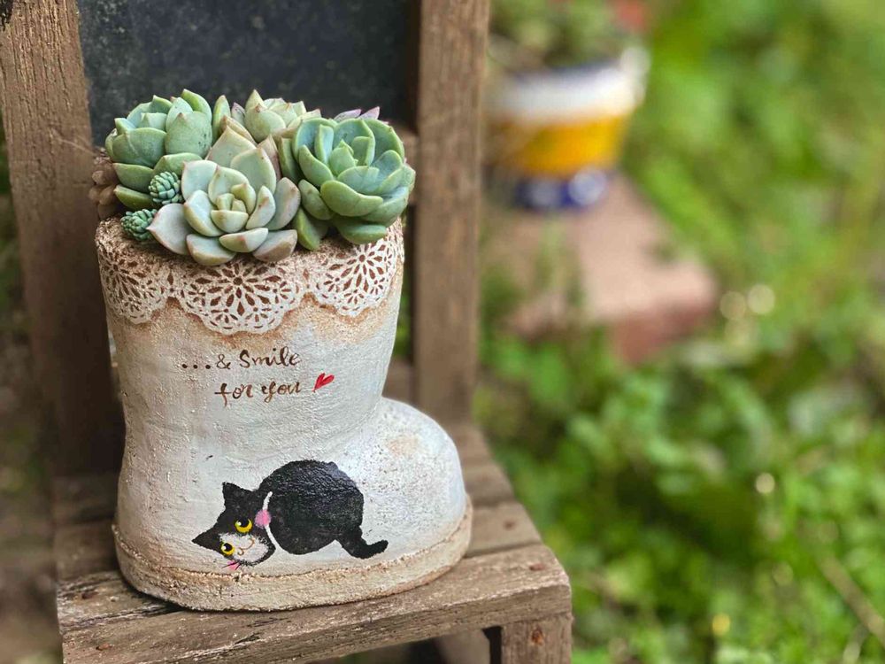 わぁ〜やっぱりこのブーツ鉢 可愛いすぎる〜😍😘 見せて貰った時から、upされるの楽しみにしていたんだよ💞 インスタの方で両面のネコちゃんが、見られて寄せ植えも可愛くて最高〜〜