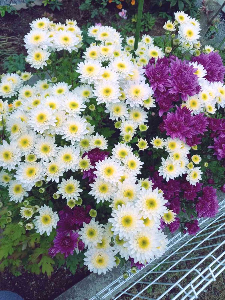 菊も強い!ですね😉去年の今頃大丈夫かな?と思いつつ地植えした2色😉白と薄いピンクだったのに、咲いてみたら白とワインカラー⁉️