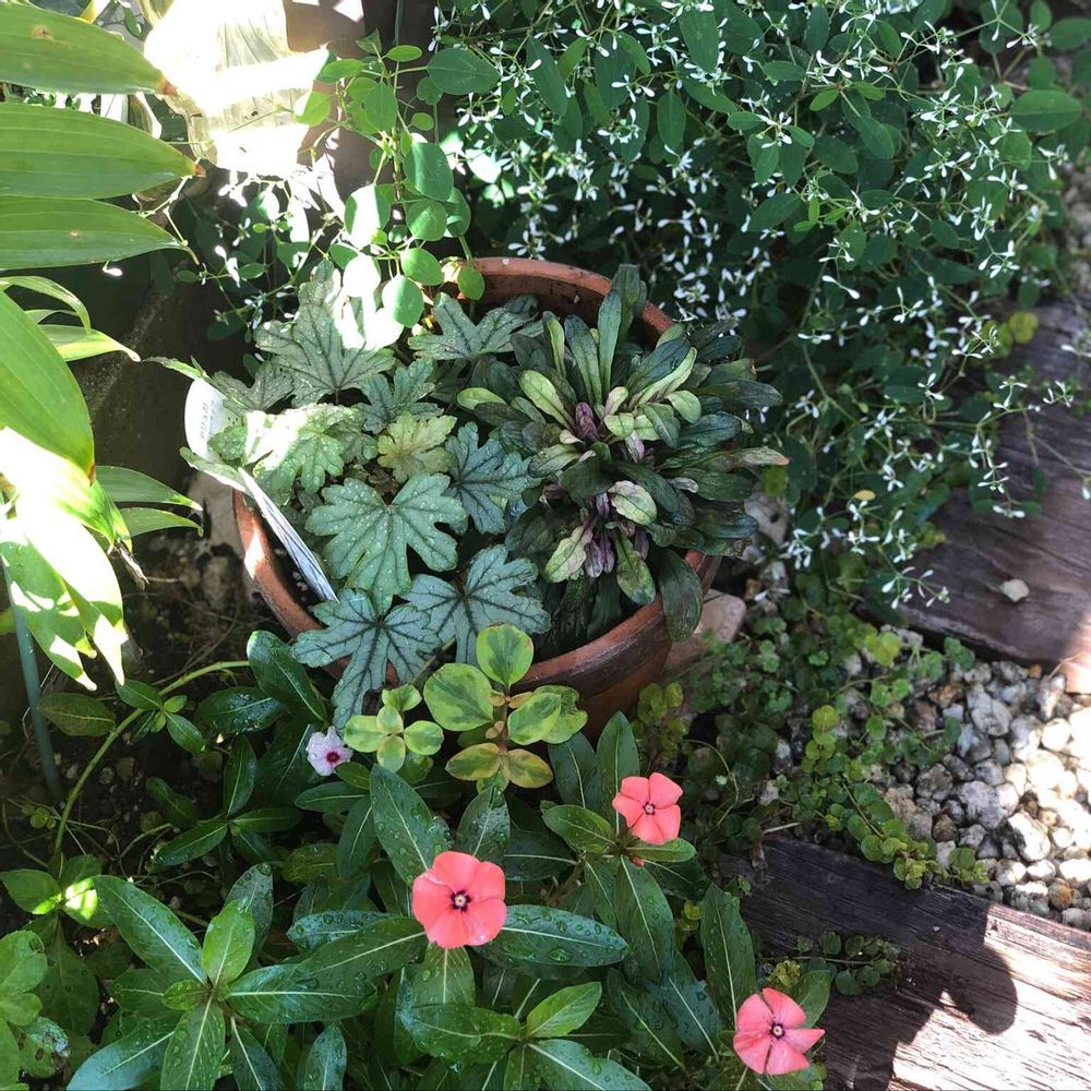 hinamama ♡さんの小さな庭,ユーホルビア ダイヤモンドフロスト。,ヒューケレラ♡フレッシュグリーンの投稿画像