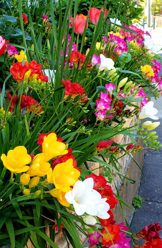 偶然通りかかった街の角を曲がったら、たくさんのフリージアがお出迎えしてくれて感動した一枚なんです。