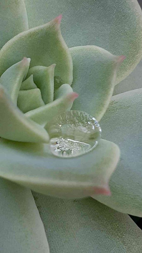 多肉ちゃんのベッドでまん丸水滴が輝いてます〜💧✨