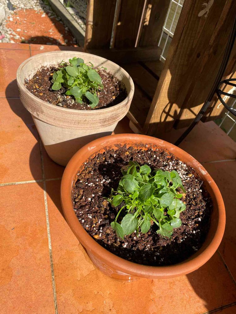 昨夜届いた徒長したプレミアムビオラディージェイは、バッサリ切り戻して✂️✂️✂️8号鉢に植え付け🪴 とても茎が太かった😳ので、切り戻したものは挿し芽にしました