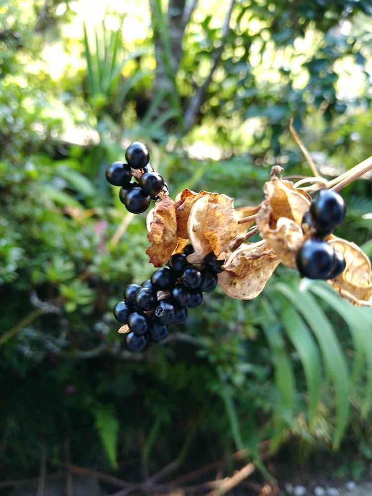 ヒオウギは別名で【烏扇(カラスオウギ)】とも呼ばれていますが、これを見ると【烏玉】って感じですね😅