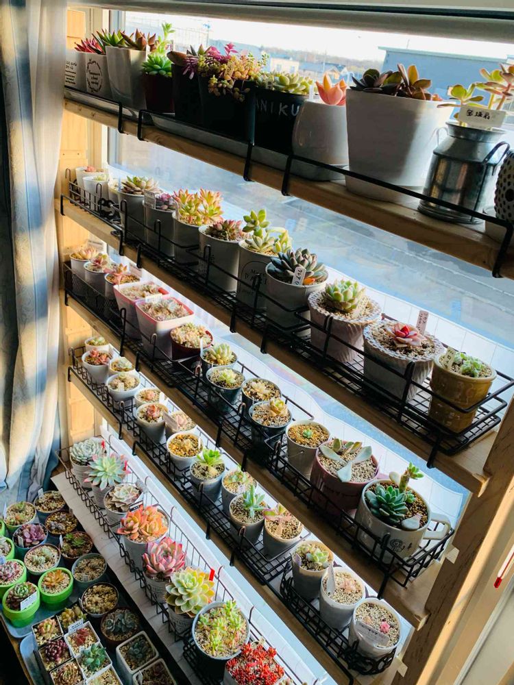 おうちの中に多肉コーナーがあって素敵ですね✨すごい量の多肉が綺麗に並んでて、几帳面なのが伝わります🌿