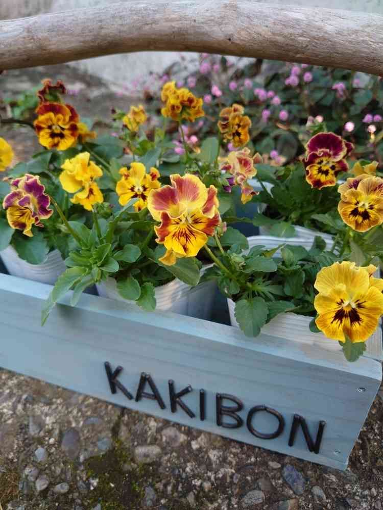 元気が出るイエローカラーのビオラちゃんたちおかもちに良く似合ってる💕😋