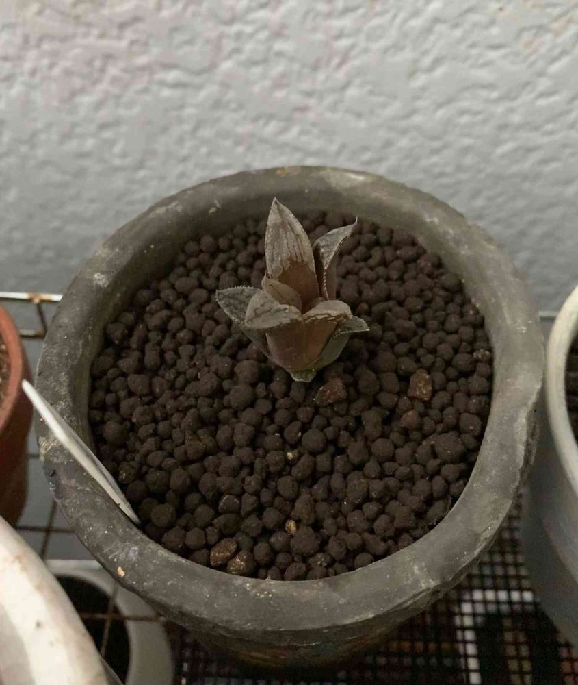 アトロフスカの土を変えるついでに、子株も根っ子立派だったのでおっかきました。