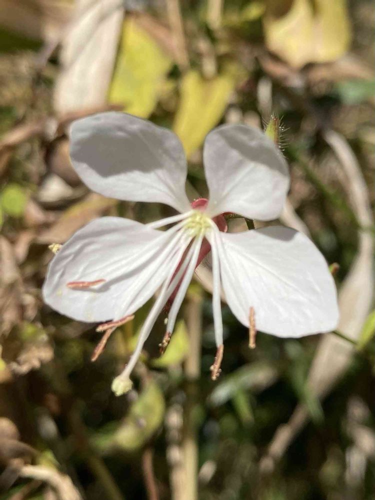 丁度一年前に近所の花好きさんから苗を頂きました。夏に草がボウボウになって何処に植えたか分からなくなり😅消えてしまったと諦めていました。周りの草が枯れてきたら白い花が現れて、嬉しくなりました🤗