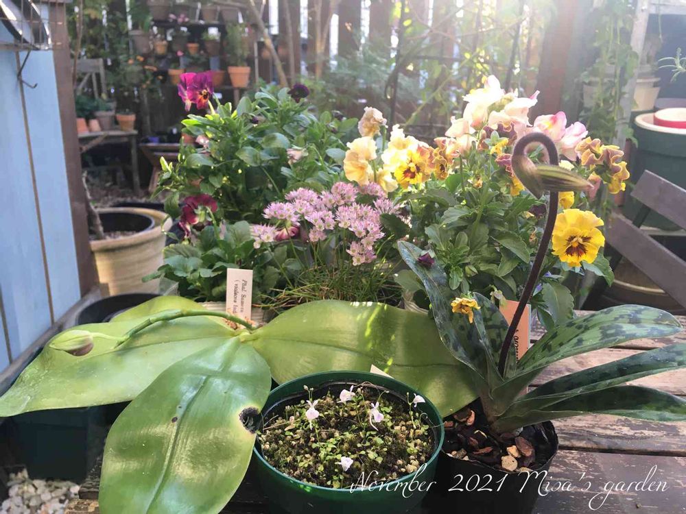 ファレノプシス、パフィオ、ウサギゴケ、糸らっきょ、ブランド物のビオラパンジー4つと、金魚草ですヾ(*´▽︎`*)🌸