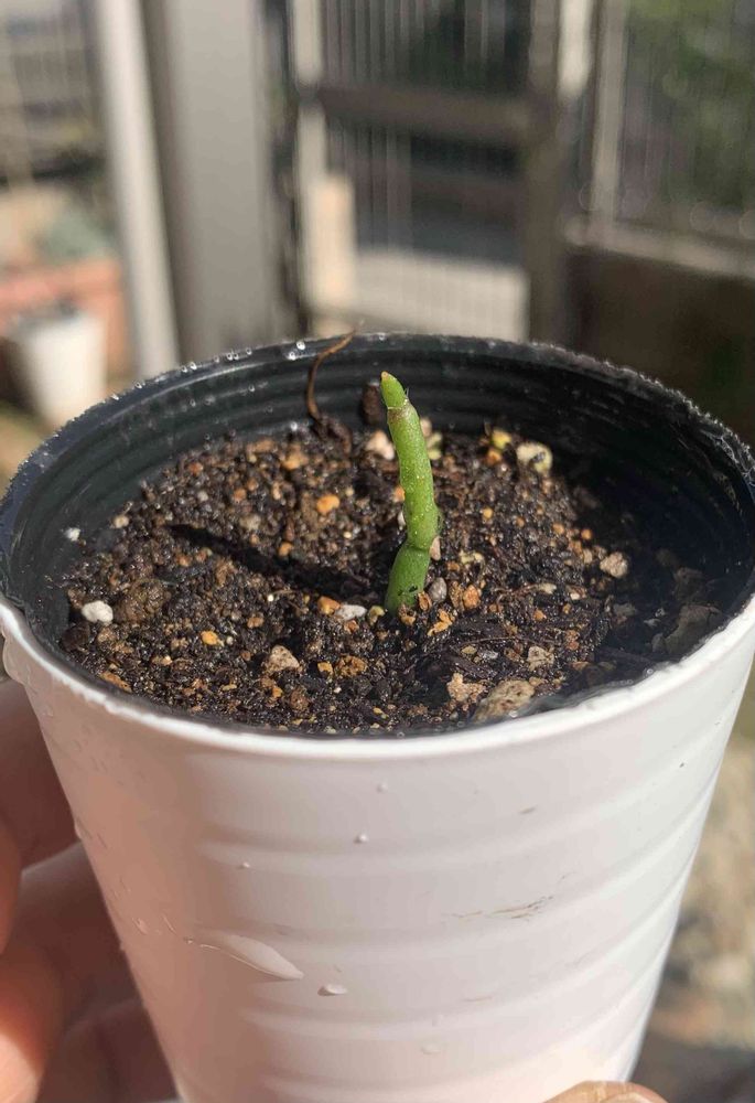 確かに成長しないと分からなそうですね🙅♂️どんな偶然か分かりませんが、実は…私も先日100均で購入のトックリランに3mmほどの緑の粒?棒?のような物が土に埋まってましたwそんな事あるのか!?と思いながら育てることにしました🪴ちなみにユーフォルビアオンコクラータは、既に持っており今の時期先端付近には小さな葉っぱがピョコピョコしてます🤩
