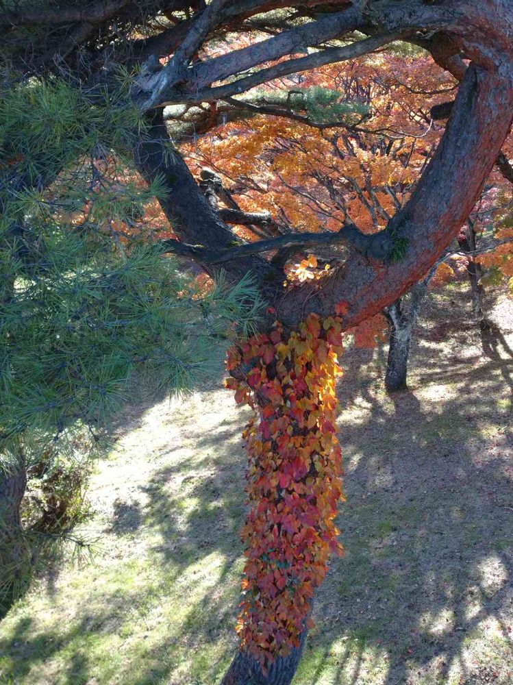 キレイな紅葉に囲まれて、緑の松の木もうらやましかったのかな( *´艸`)💓