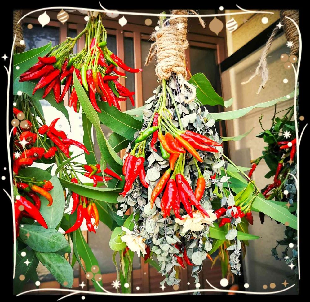 鮮やかな唐辛子🌶✨スワッグ素敵ですね😊魔除けに唐辛子を吊るしたりもするし♪
