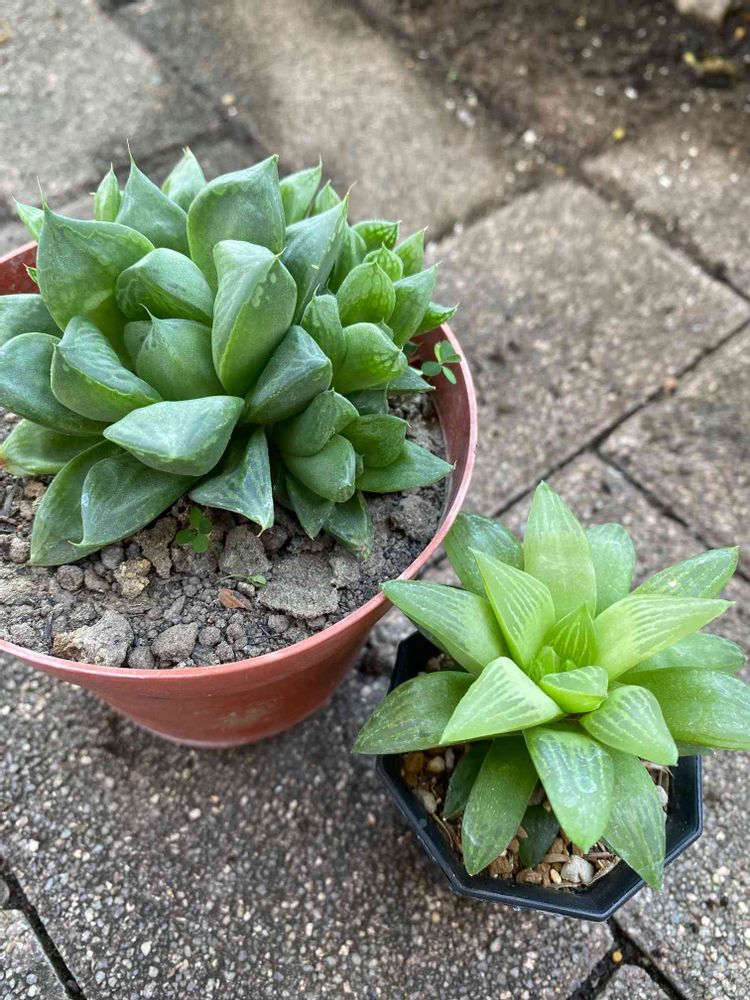 初ハオルチアは子株が沢山付いてた左の子と色がキレイな右の子にしました💕