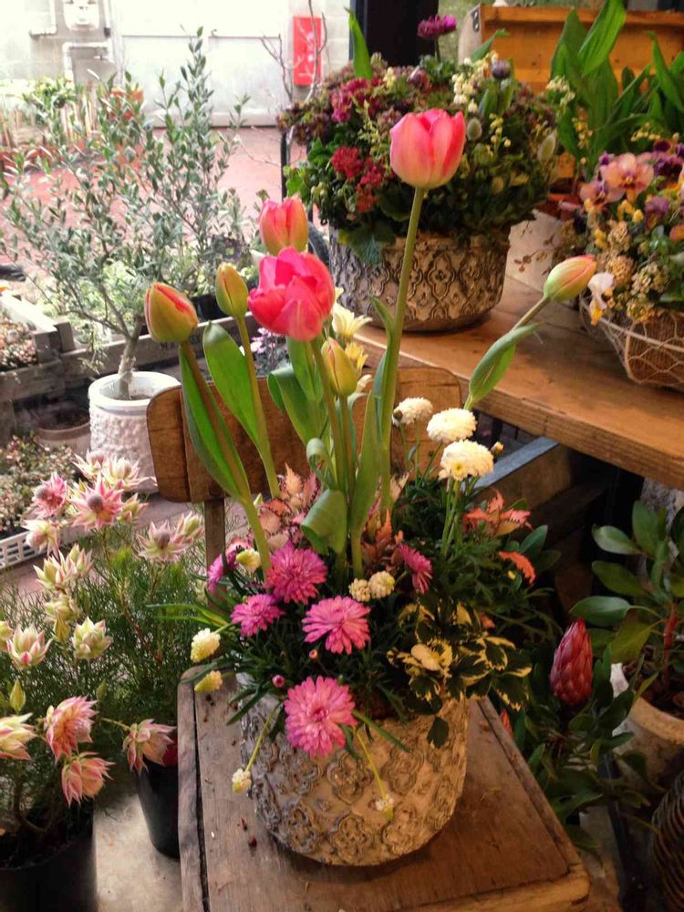 ステキな寄せ植えが、たーくさん🤗お庭が一気に春が来たみたいで別世界ですねっ!