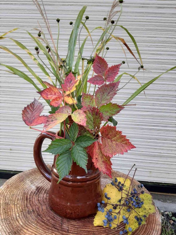 とてもいいアレンジですね。秋明菊の残り花の丸い形が可愛らしいです。