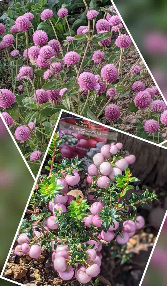 ピンクのポンポン2種千日紅とハッピーベリー真珠の木