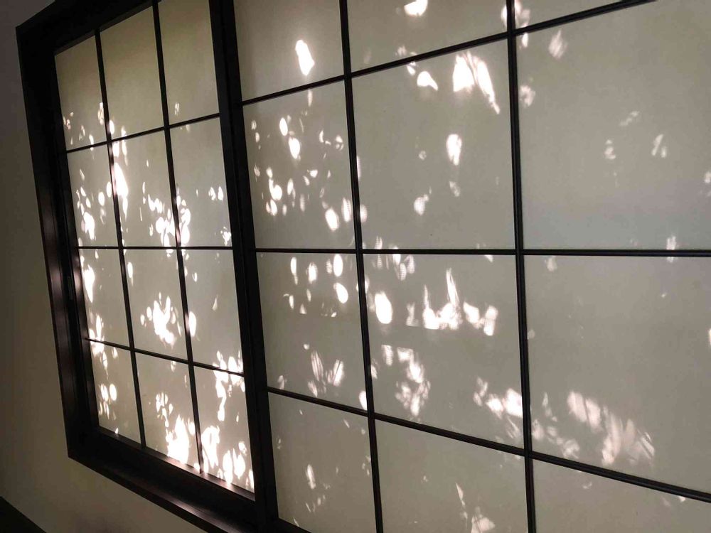 障子に映る葉影があります。影が何に見えるか、想像するのも楽しいです。