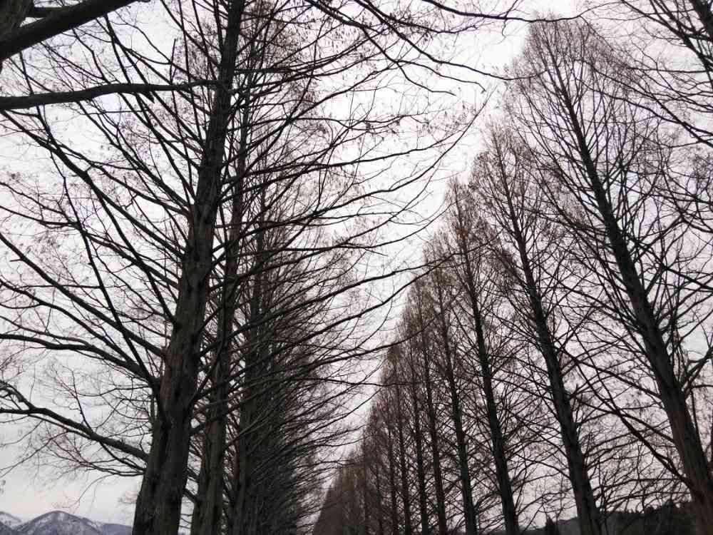 去年も同じ場所で、このメタセコイア並木を撮って、投稿したのを見ると、