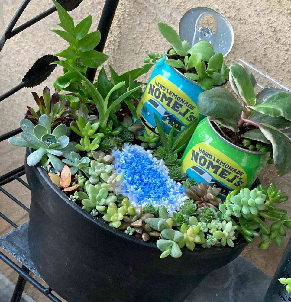 転がっている多肉たちをハワイアンチックな箱庭にしてみました。