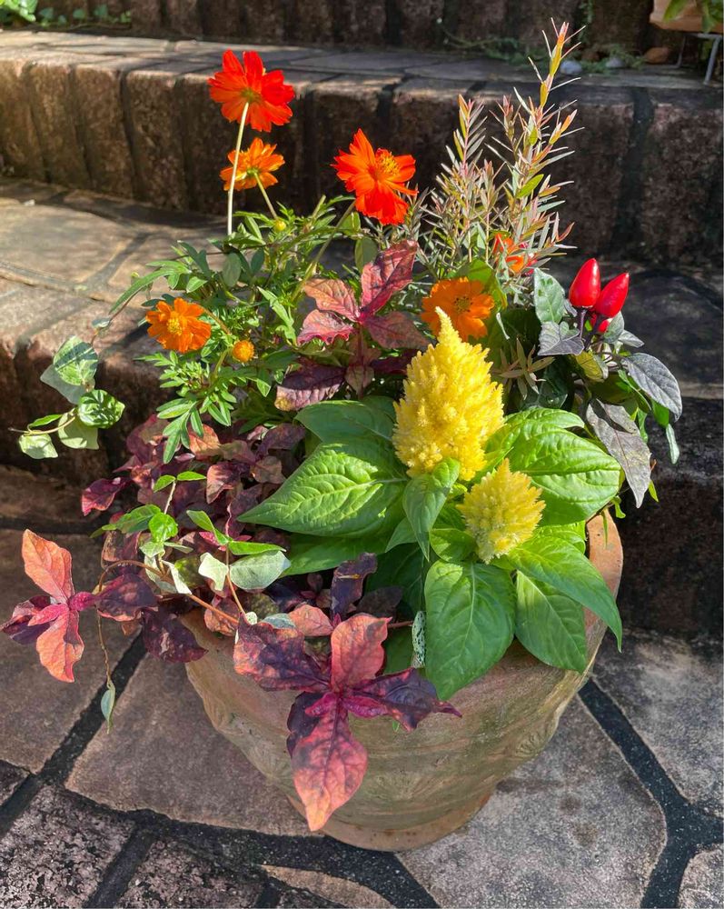 小さな庭,セロシア,お花の寄せ植えの投稿画像