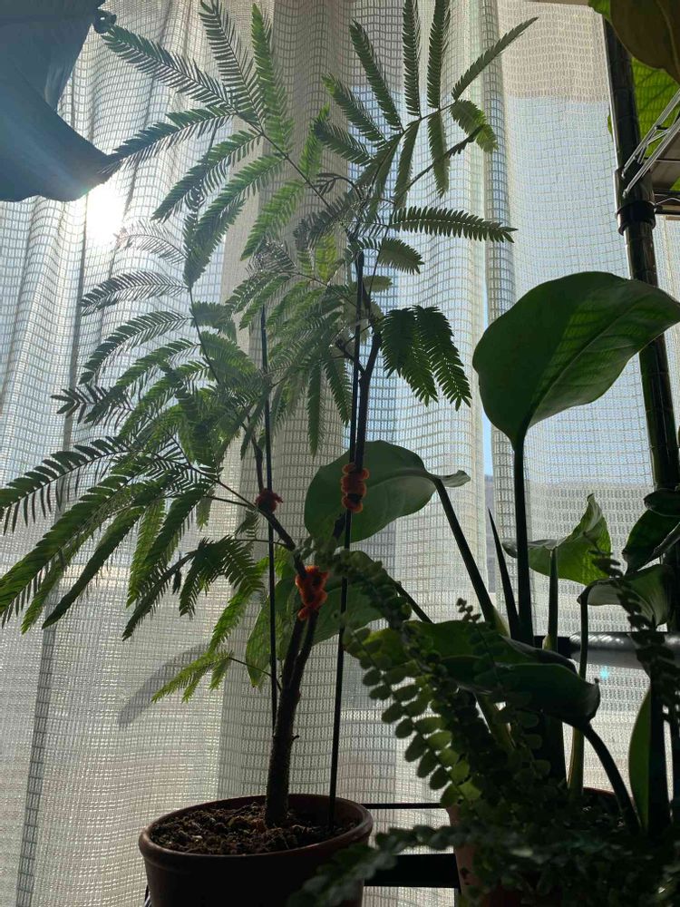去年の11月末頃にチリチリのカサカサになって葉っぱが落ちてしまったエバーフレッシュさん。