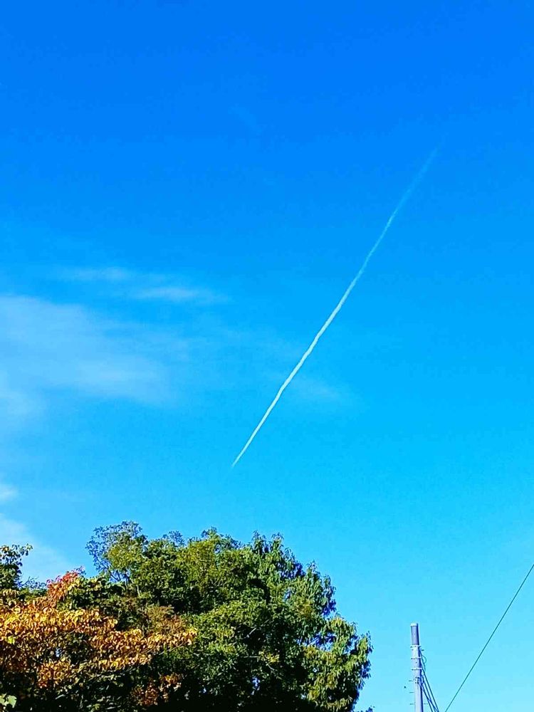 水元公園の出口から、飛行機曇✈☁発見しました。