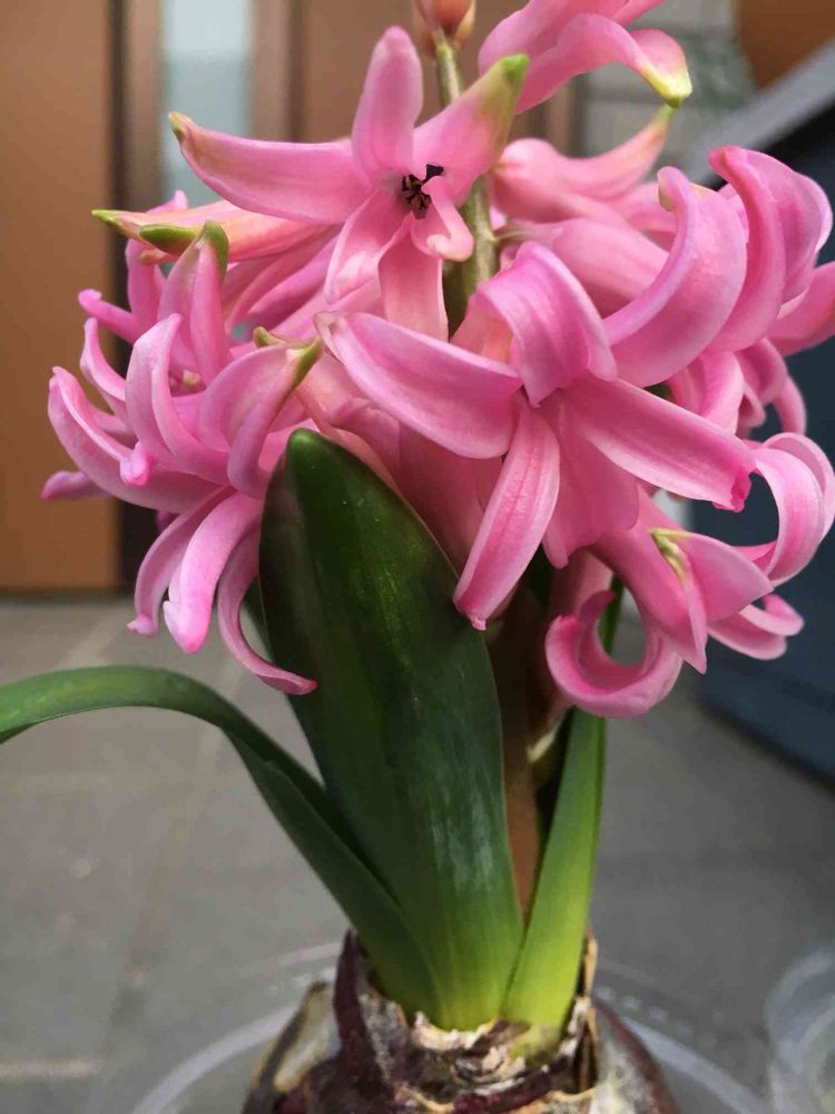 白のヒヤシンスと同じ日に水栽培を始めましたが‥やっと顔を出してくれました。