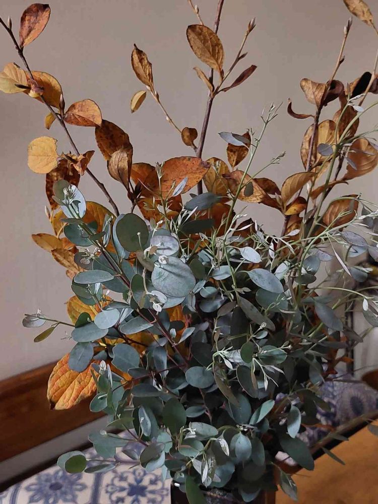 ユーカリと枯れ葉の綺麗な枝