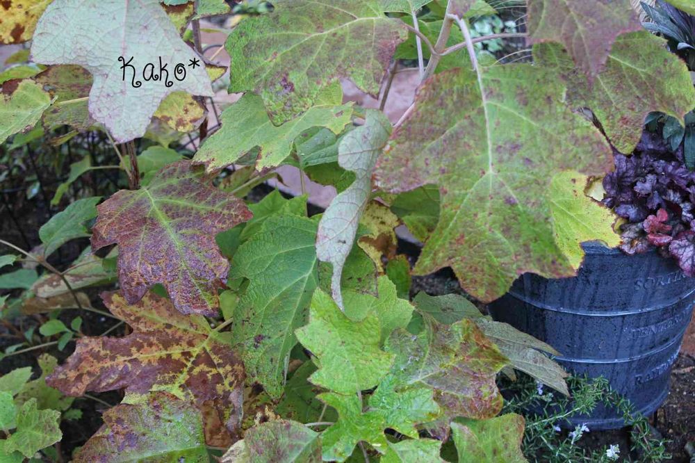 柏葉アジサイ、紅葉がいい感じですね〜。小さい葉っぱも可愛いですね。