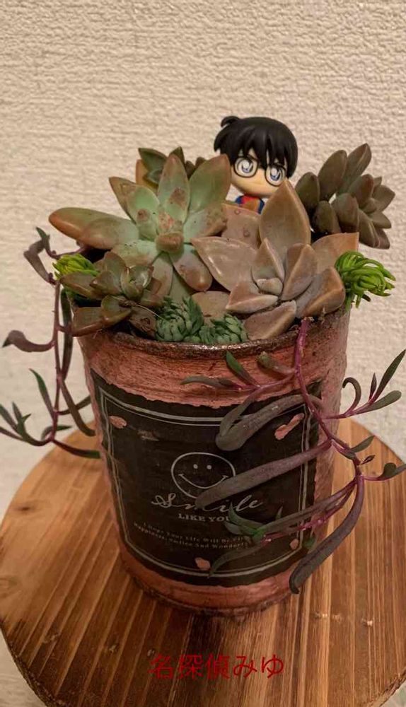 多肉ちゃんに囲まれて、喜んでるコナンです💖