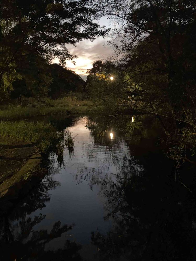 家路に向かう帰り道に石神井公園内を通り過ぎる時の夕景に公園の木々がシルエットになって美しい光景を…🤳
