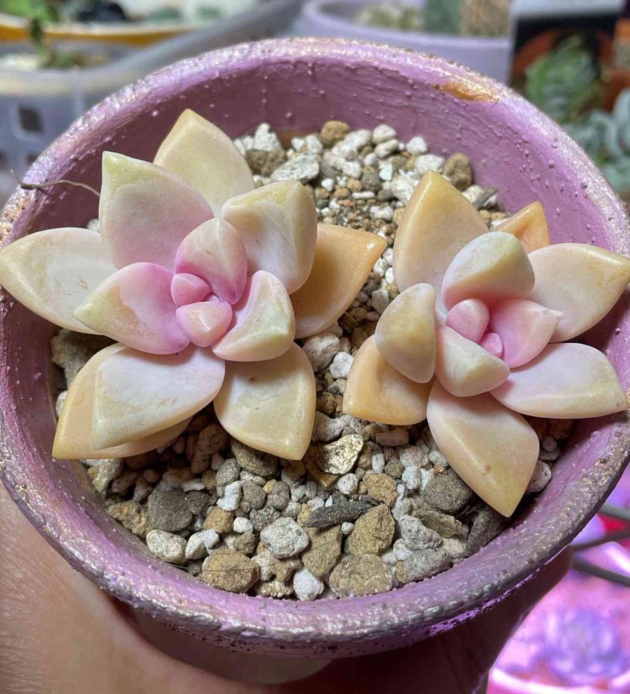 朧月(グラプトペタルム パラグアイエンセ)とセダムの何かとの交配だそうです🙄ナニカッテ…