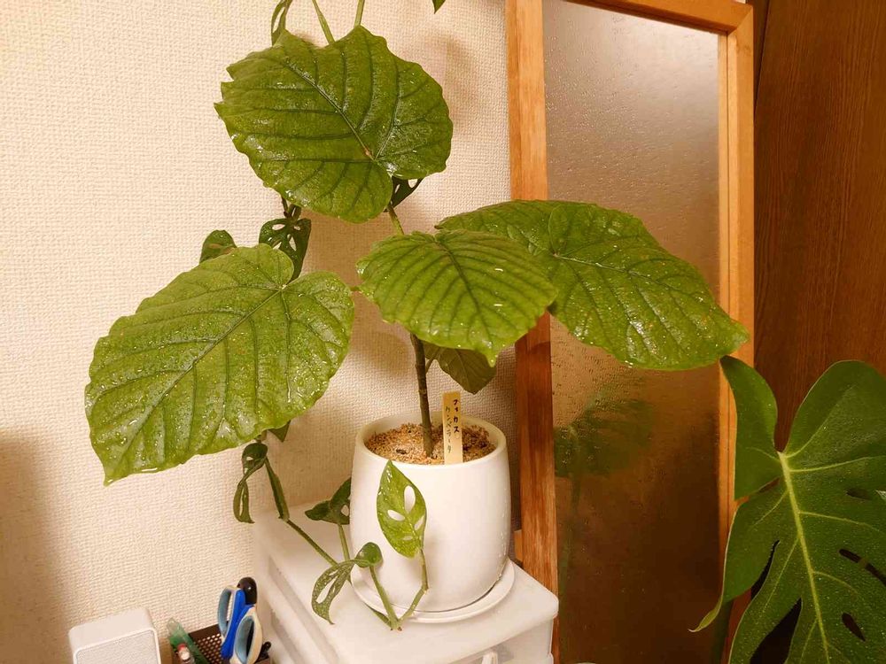 2021年モンステラの葉に魅せられ観葉植物育成デビュー、モンステラ、クワズイモなどのサトイモ系、サンセベリア、フィカス系が特に気に入っています。そして2021年末ビカクシダに手を出し沼にハマってます。