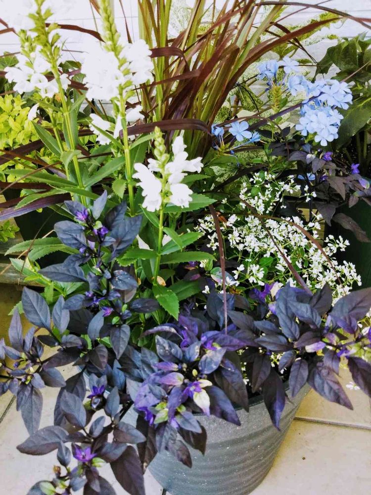 落ち着いててステキな寄せ植え😍7月のですか😳‼️観賞用とうがらし、鑑賞期間長いですね✨ハナトラノオは、前から不思議な名前だな〜って思ってました❣️お花キレイ🥰