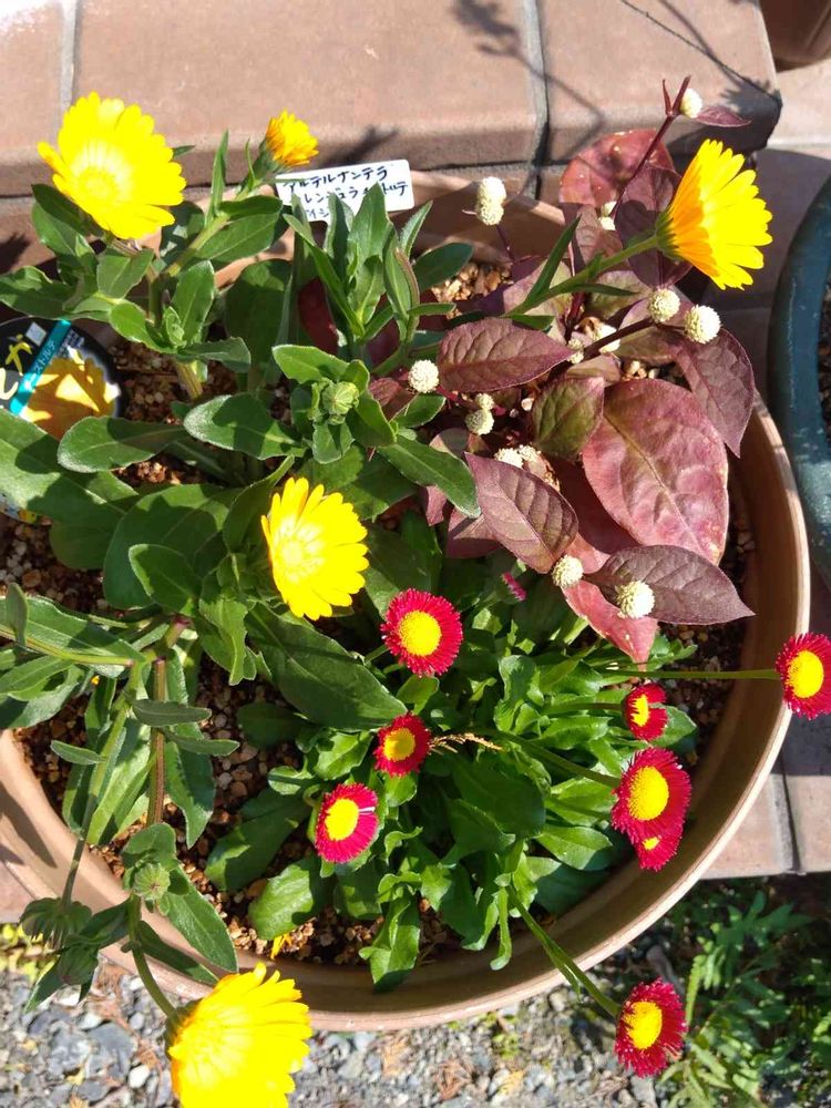 デイジーとアルタナンテラとカレンジュラの寄植えを作ってみました。