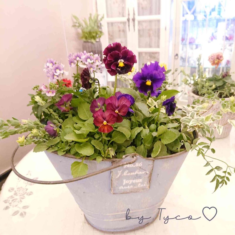 様 凄く愛らしいですよ😊可愛い〜ブリキの鉢とバッチグーです👍