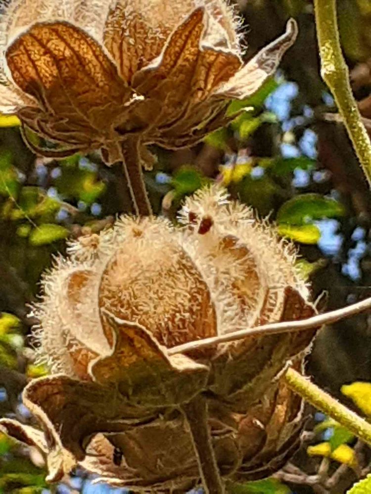 弾けた実の中から、ふわふわモフモフの酔芙蓉の種が今にも溢れだしそうにしています🎵