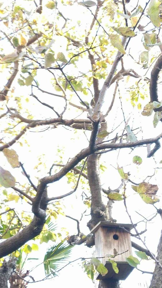 アンズの葉も、少なくなると、鳥たちが巣箱を見にやってきます。