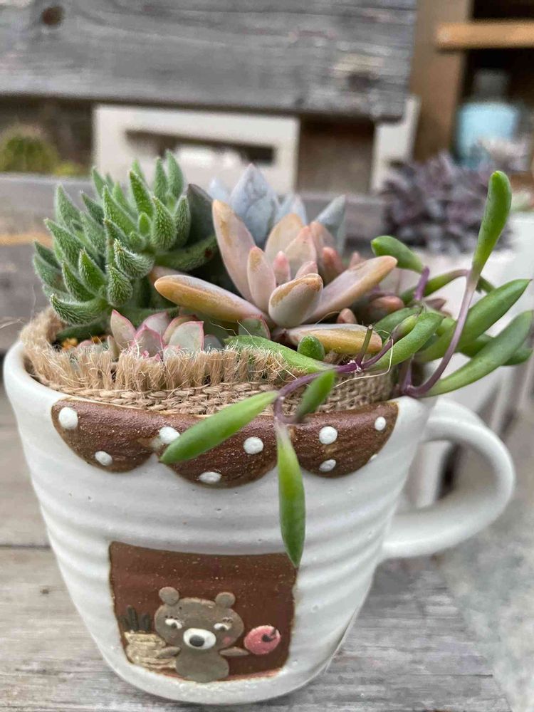 仕事帰りに、笠間焼マルシェで多肉入り可愛い〜植木鉢お迎えしちゃった🪴