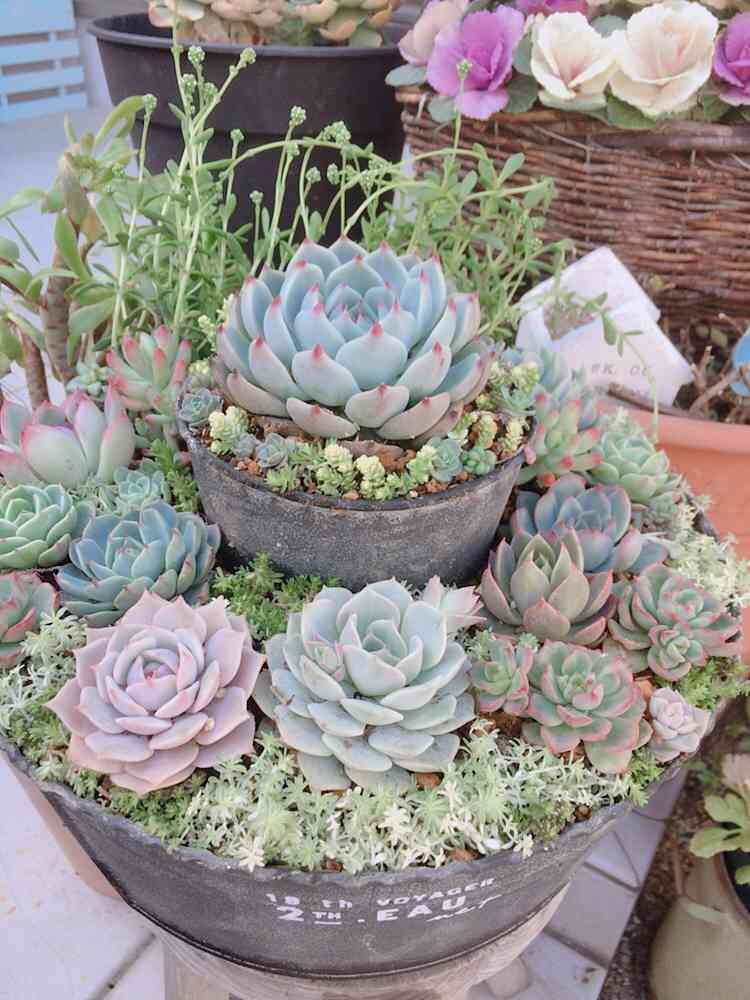 昨日、鉢減らしのために寄せ植えを作りました。ここまでに、二時間…