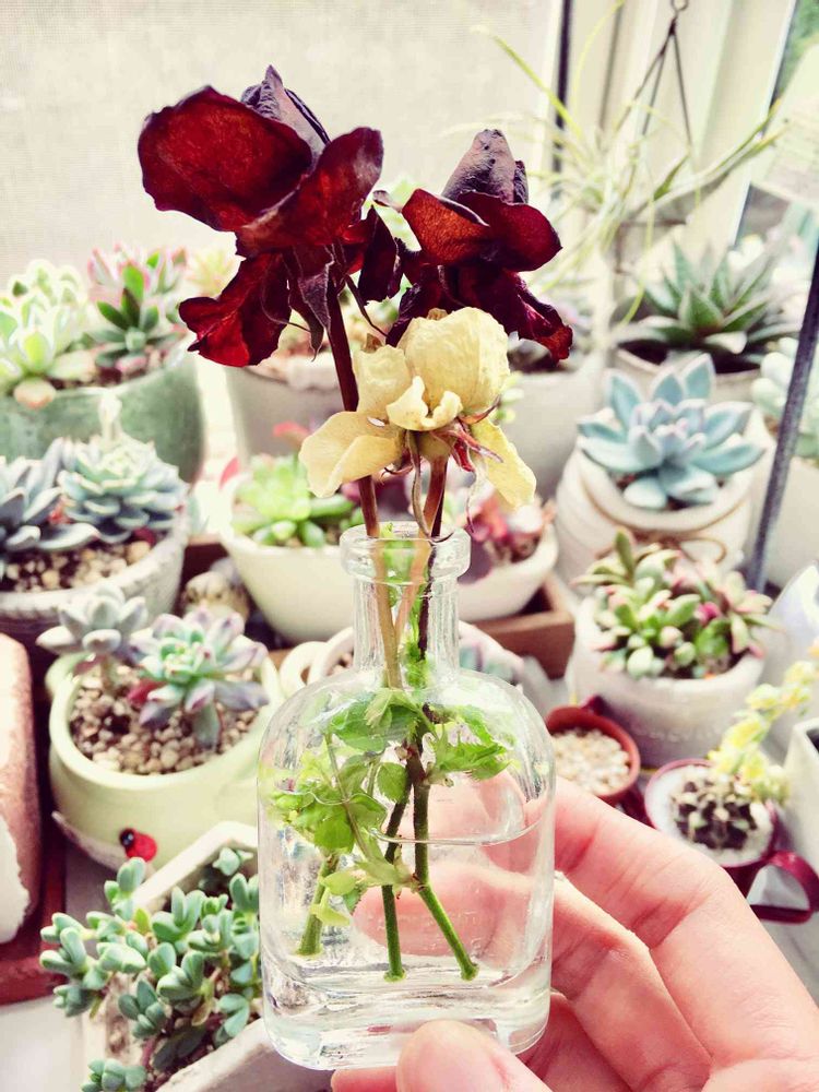 私はバラではないですが、ローズマリーを水に挿して生けてたら根っこがニョロニョロ出てきました😁