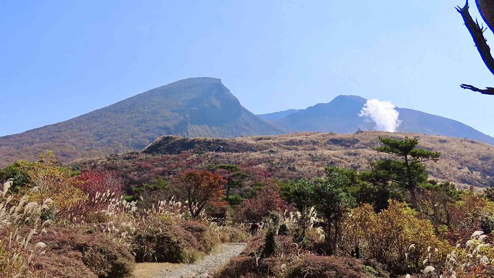 いつも登っているのは硫黄岳の噴煙の向こう側の韓国岳