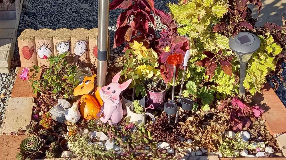このコーナに植える花や多肉は、娘の許可なくては植えられないのです。