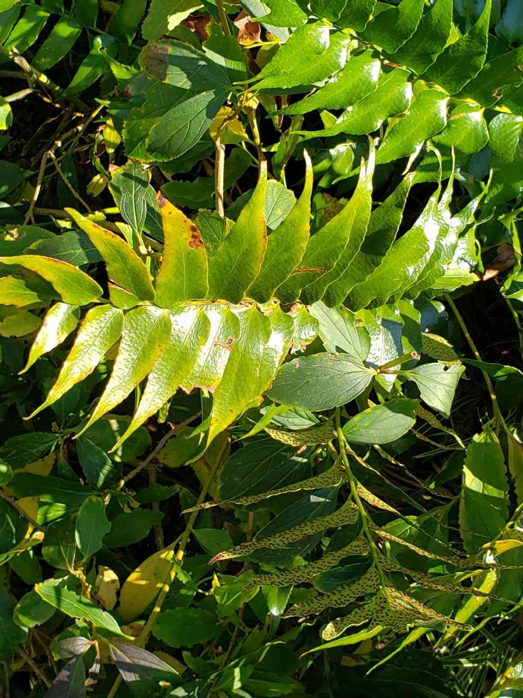 葉の裏に胞子があるのでシダ類だと思いますが、葉は大きくて固いので、冬もこのまま越せそうな感じです。