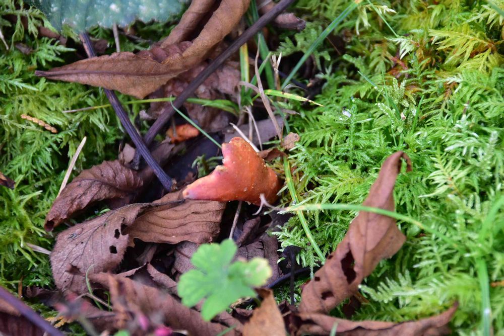 これは日光植物園ですね。小さい橙色のカケラみたいなの、猛毒キノコの「カエンタケ」です。