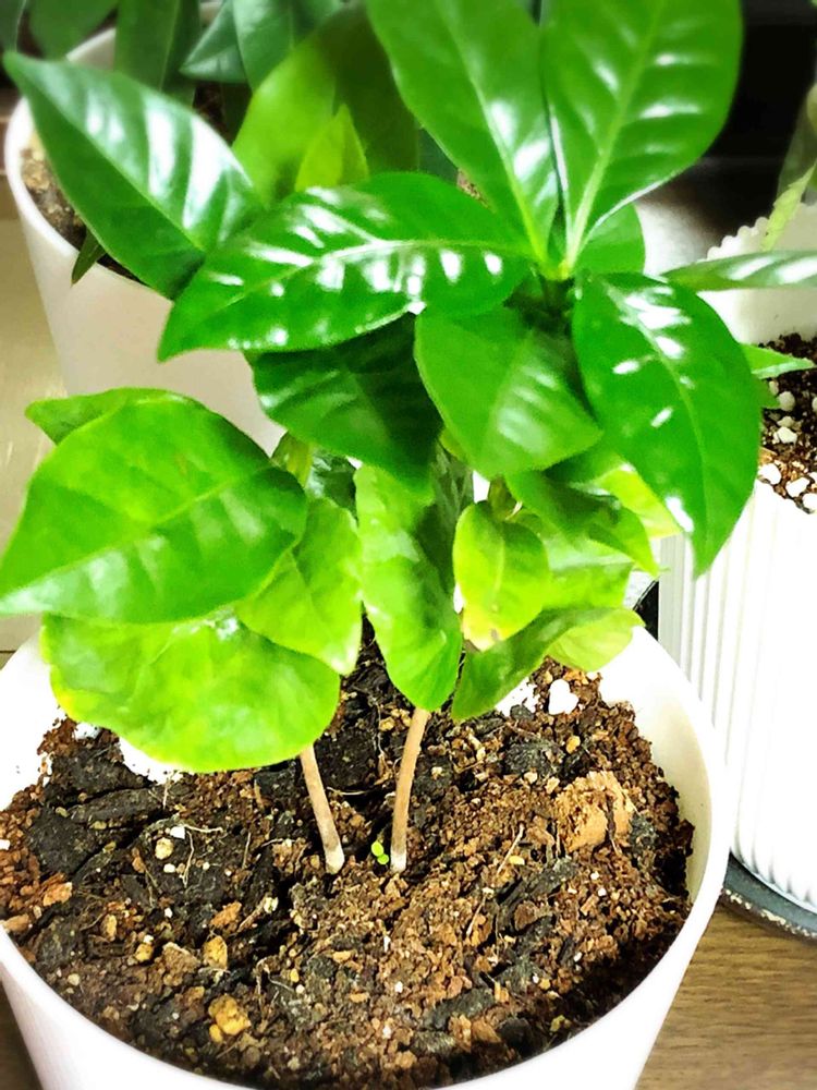 コーヒーの木の根元にちっこい双葉が出てるんだけど、、これは新芽か??雑草っぽくて抜いてしまいそう😅