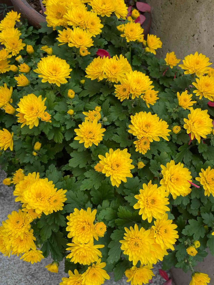 ガーデンマムの小鉢が満開を迎えようとしています