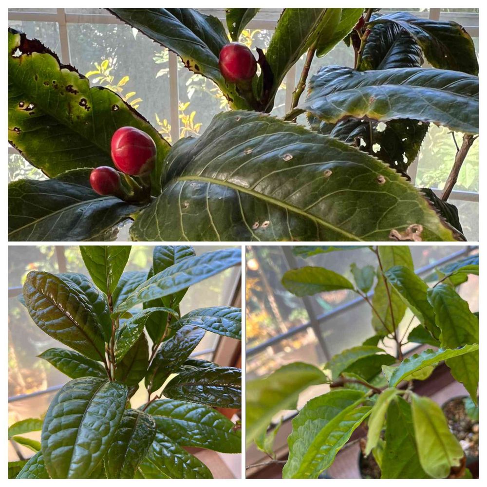 ベトナムツバキのハイドゥンキング、誰かに食べられるのか葉焼けなのか、穴だらけになってます😰