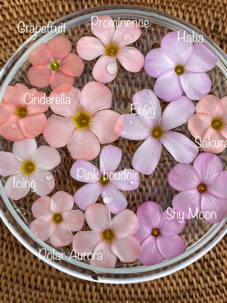 オキザリスを中心に、小さな庭で花を楽しんでいます。