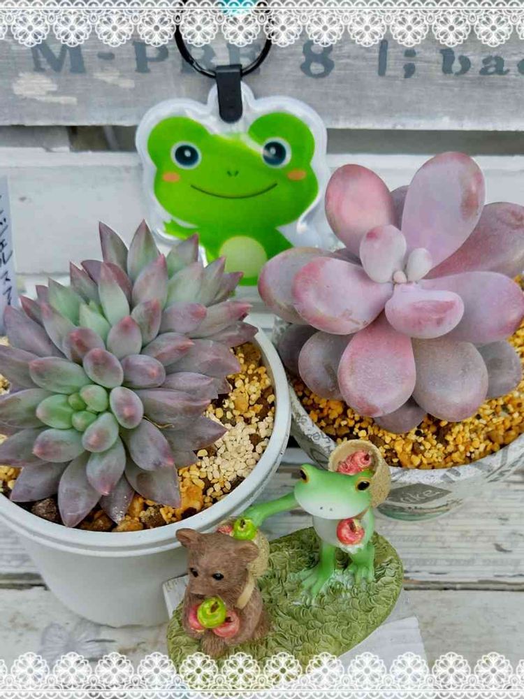 ムッチリぷくぷくの日にピッタリの多肉ちゃん達だね~ビンク色も可愛いね~💗これからもっと紅葉するのかな? コポ&クマたんも可愛らしいね~🐸🐻