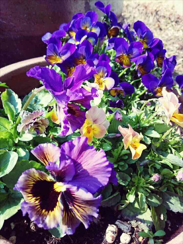 11月に植えたパンジー.ビオラの寄せ植え🌼天気が良いと鮮やかな色が映えます☀